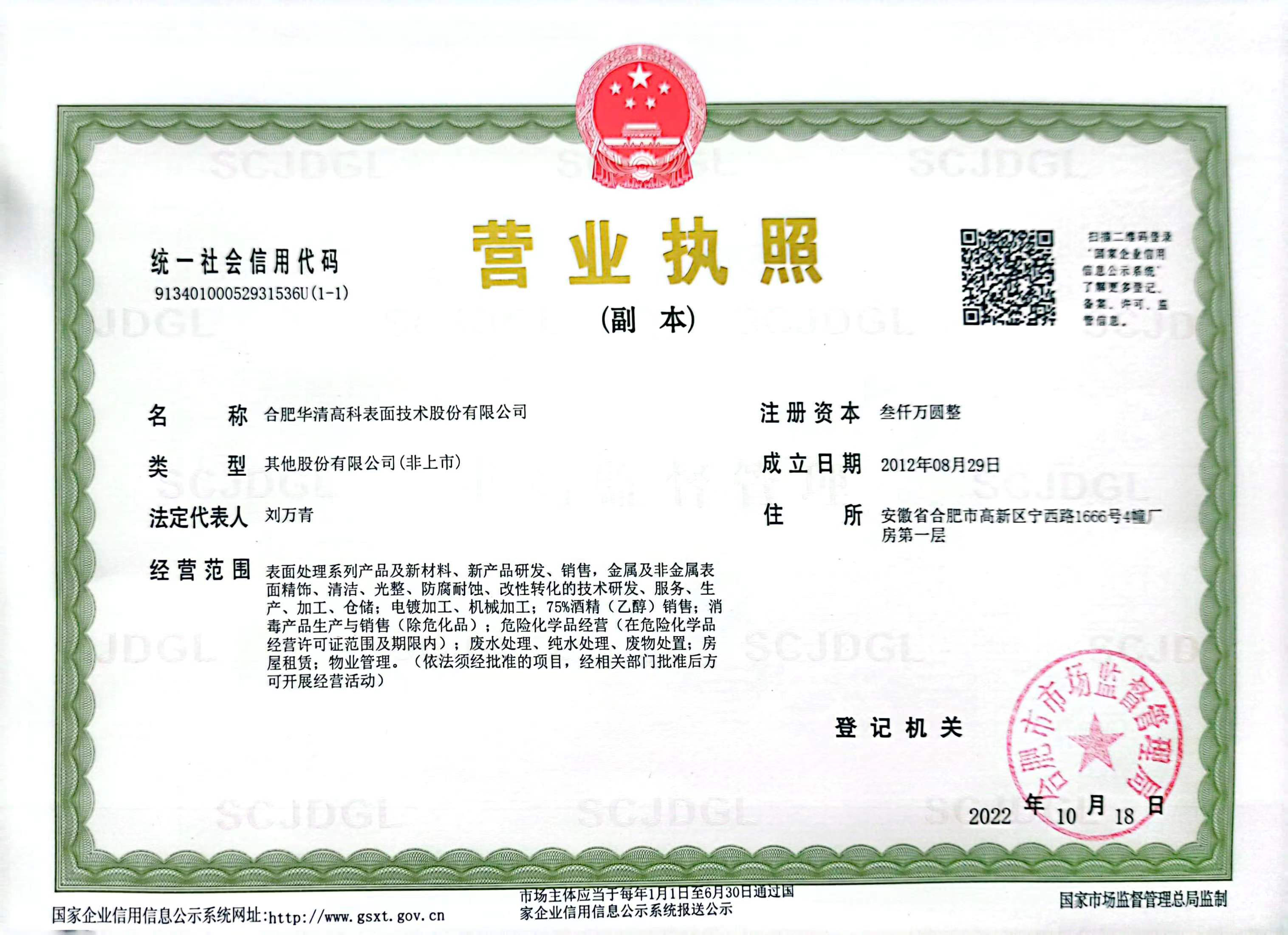 合肥華清高科表面技術(shù)股份有限公司位于合肥市國家級(jí)高新技術(shù)產(chǎn)業(yè)開發(fā)區(qū),總占地面積560畝。長期從事金屬及非金屬表面材料防護(hù)方面科研開發(fā)工作,特別是鎂合金高防腐及功能化,碳纖維金屬化、金屬緩蝕方面有很高理論研究和很強(qiáng)科研能力。主營業(yè)務(wù)為:表面處理新材料、新能源液冷新材料、航空航天零部件加工、電子電鍍加工、表面處理功能化裝備研發(fā)、生產(chǎn)、加工及銷售一體的高新技術(shù)企業(yè)。產(chǎn)品主要應(yīng)用于航空航天、軍工、新能源、通信、3C、5G、低空飛行器、電子半導(dǎo)體等領(lǐng)域。